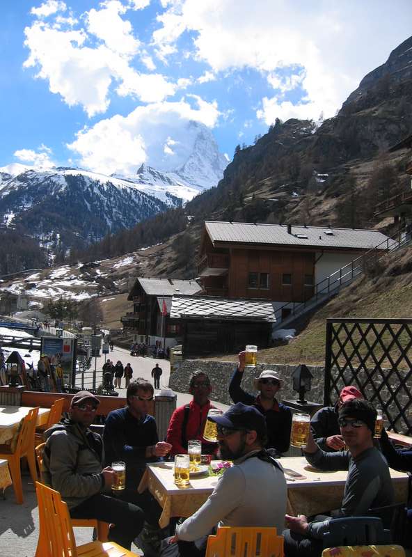 Celebrando en Zermatt el fin de la travesía.